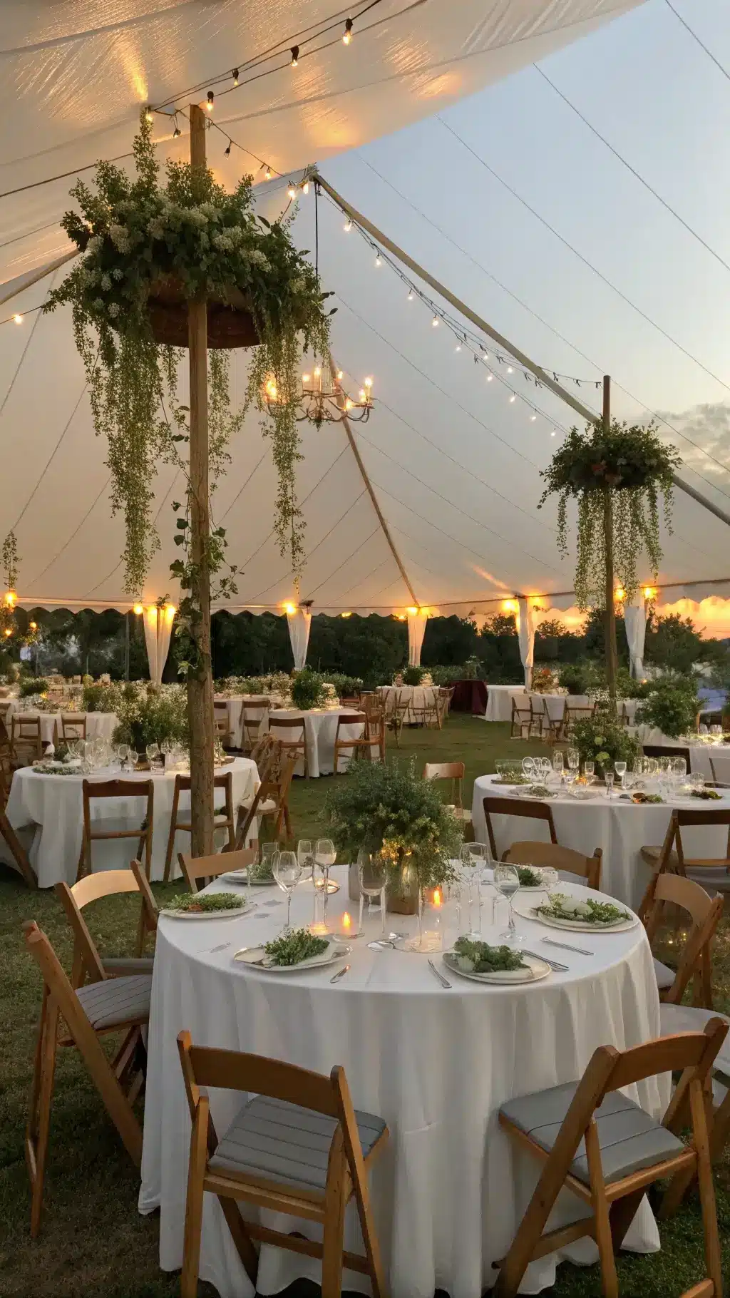 Clean and clear your venue, lay down ivory or cream table linens, arrange furniture, and visualize the flow.