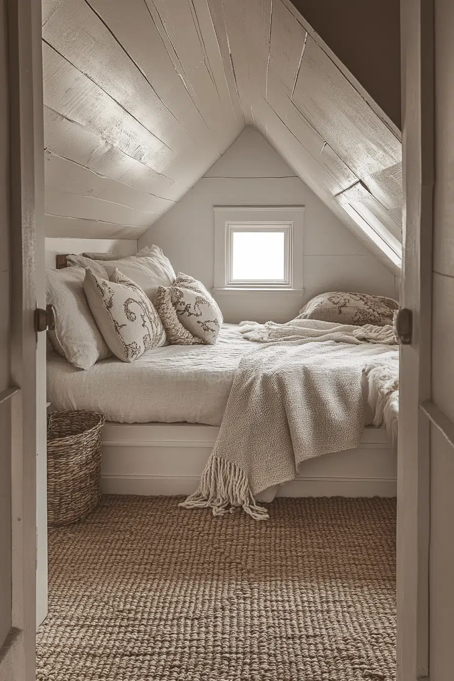 Unique architectural features like sloped ceilings can add character to creative small guest room ideas. Custom beds fitted under angled walls make use of tricky layouts. Small guest room ideas benefit from low-profile furniture that keeps the room feeling open. Light walls and soft lighting brighten the space while highlighting its charm. These features turn limitations into standout design elements. Explore small guest room ideas that embrace every architectural detail!