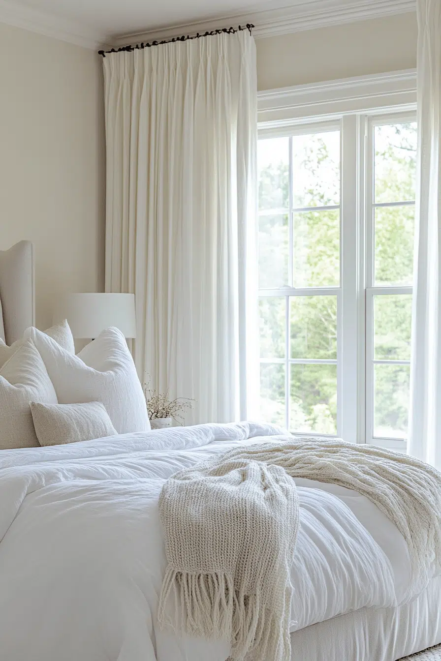 Bright, airy styling can make small guest room ideas feel open and uplifting. Sheer curtains allow natural light to flood the space beautifully. Small guest room ideas often include floating furniture to reduce visual weight. Light colors and soft textures enhance the sense of space. The room feels cheerful, welcoming, and full of life. Refresh your home with small guest room ideas that maximize light and openness!