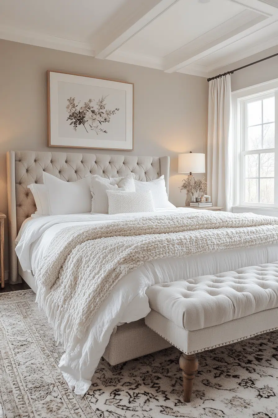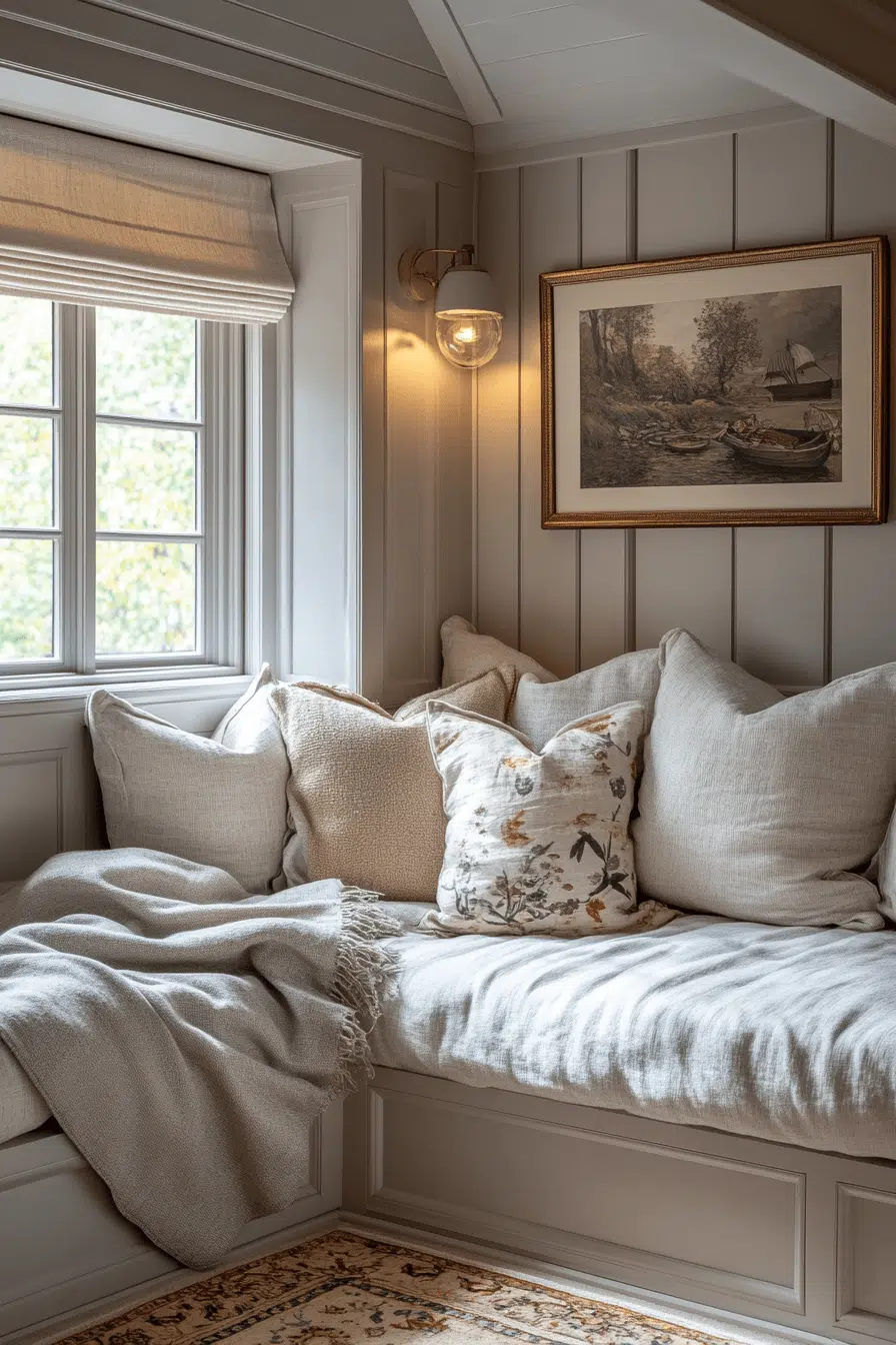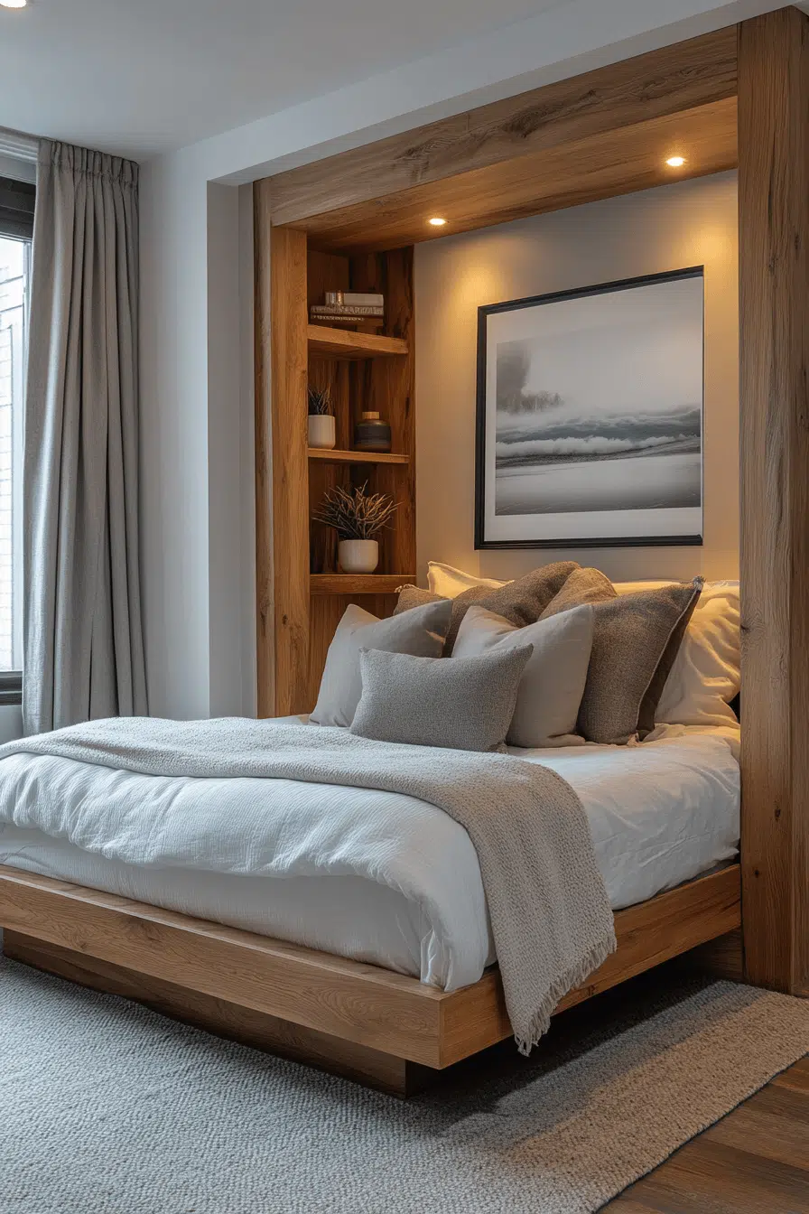 Soft neutral tones create a calming base for relaxing small guest room ideas. Shades of beige, cream, and warm gray reflect light beautifully. Small guest room ideas using this palette feel open, warm, and inviting. Layered textures add depth without overwhelming the design. The space becomes a peaceful retreat for guests. Create a serene escape with small guest room ideas built on soft neutrals!