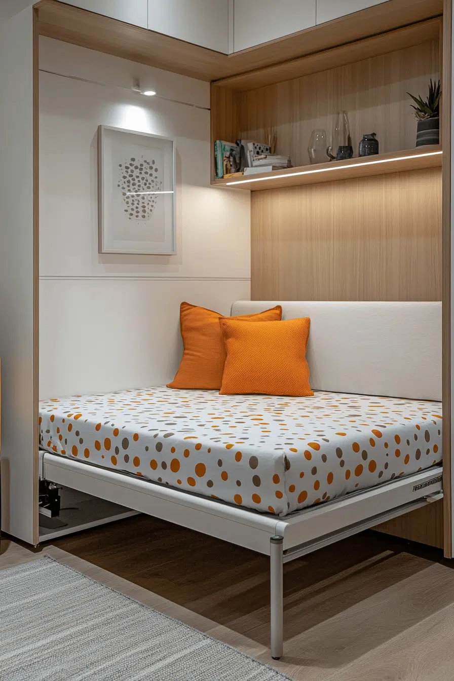 Innovative features like Murphy beds bring new life to practical small guest room ideas. Folding the bed away instantly opens the room for other daily uses like work or relaxation. Many designs blend seamlessly into cabinetry, creating a polished and cohesive look. Small guest room ideas that include this feature maximize flexibility without sacrificing style. This makes them ideal for multi-purpose spaces in smaller homes. Discover how small guest room ideas can transform with smart space-saving solutions!