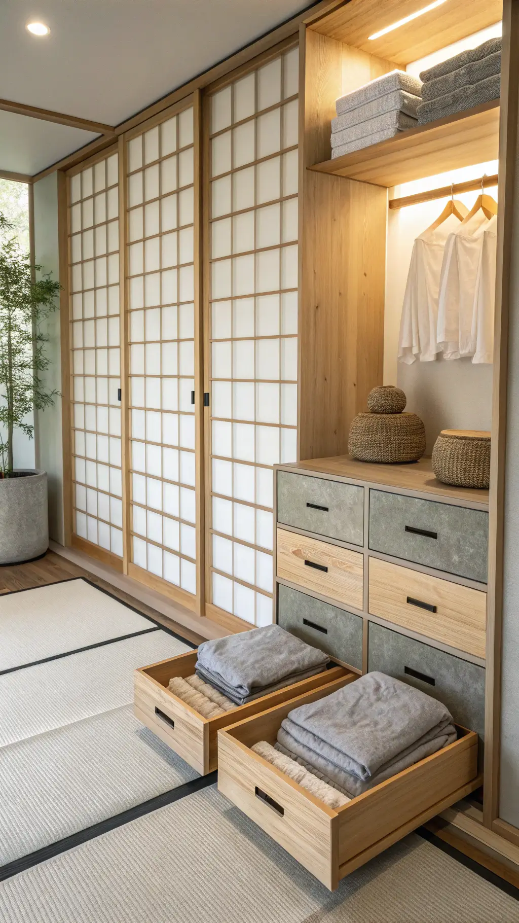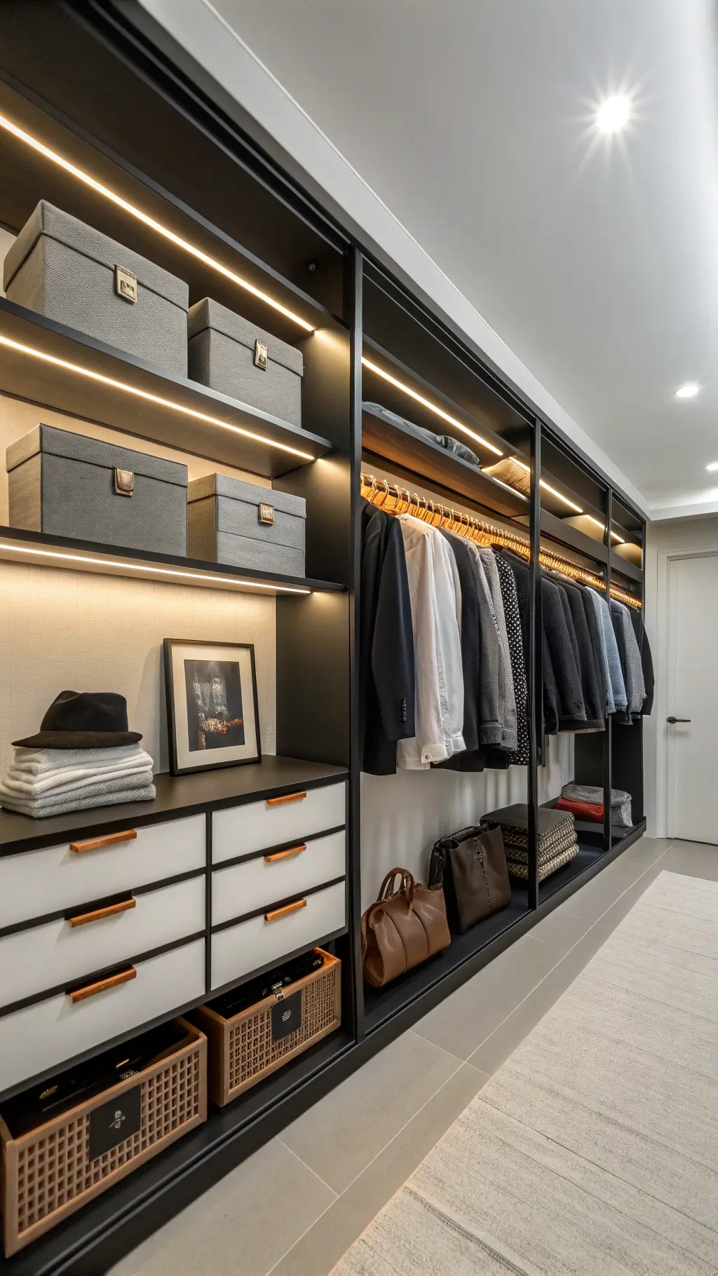 <img src="https://clothandrustic.com/wp-content/uploads/2025/09/2397urban-loft-storage-closet.webp" alt=""Contemporary urban loft closet with modular aluminum framework, smoky glass panels, leather-wrapped hanging rods, and charcoal grey drawers, highlighted by afternoon cityscape reflections and dramatic side lighting."" style="