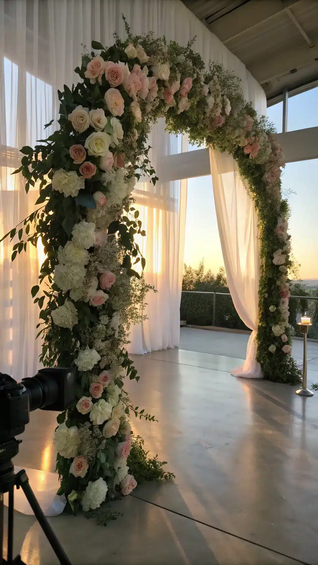 I watched Sarah’s florist build this massive floral arch with roses, eucalyptus, and pampas grass that literally made people tear up during the ceremony.