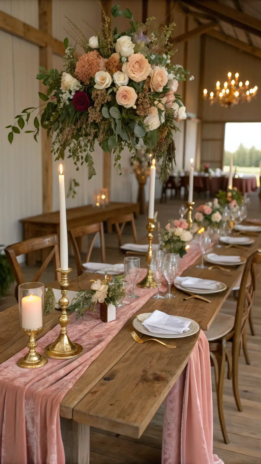 We used dusty rose velvet table runners that caught the light in the most gorgeous way.