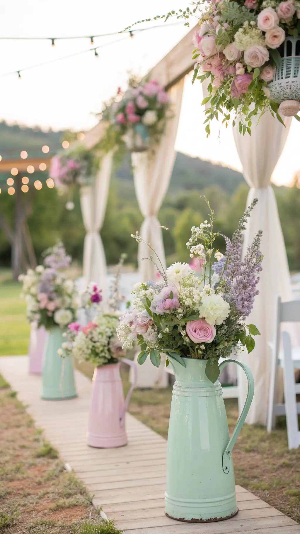 Hanging jars with flowers are surprisingly easy and budget-friendly.