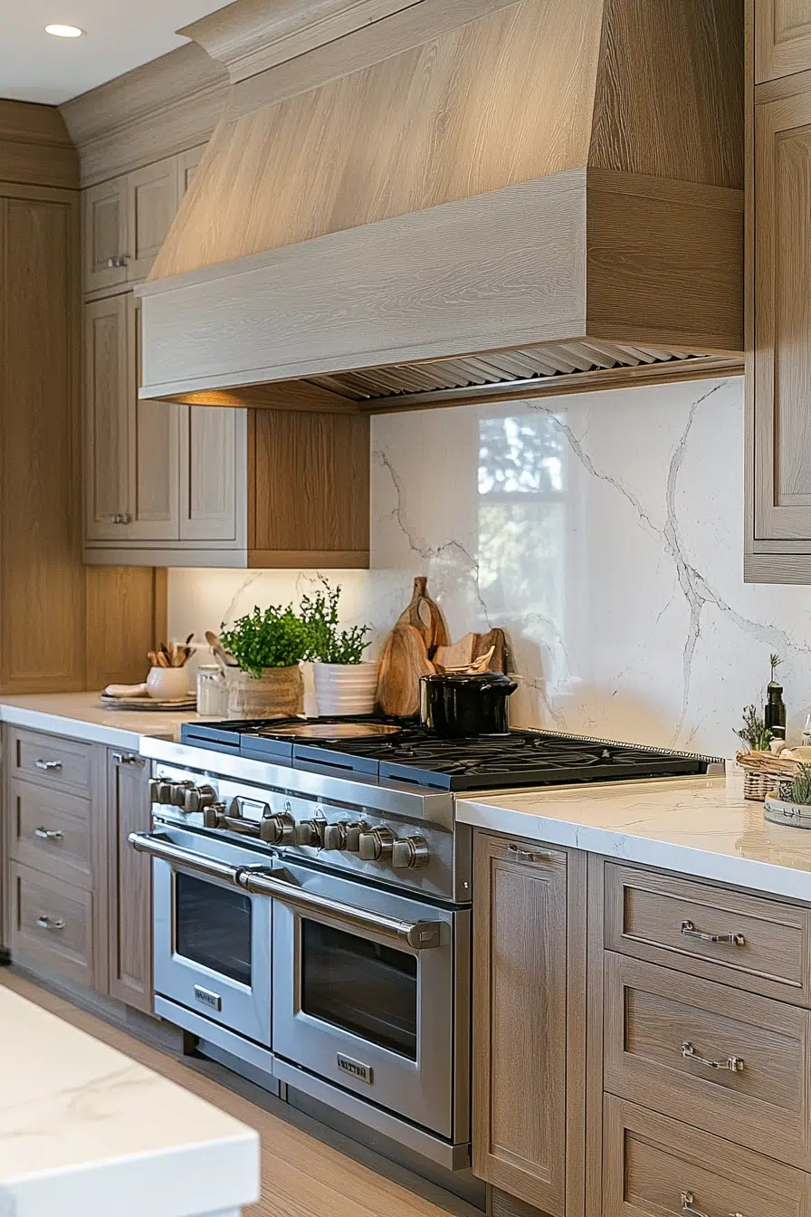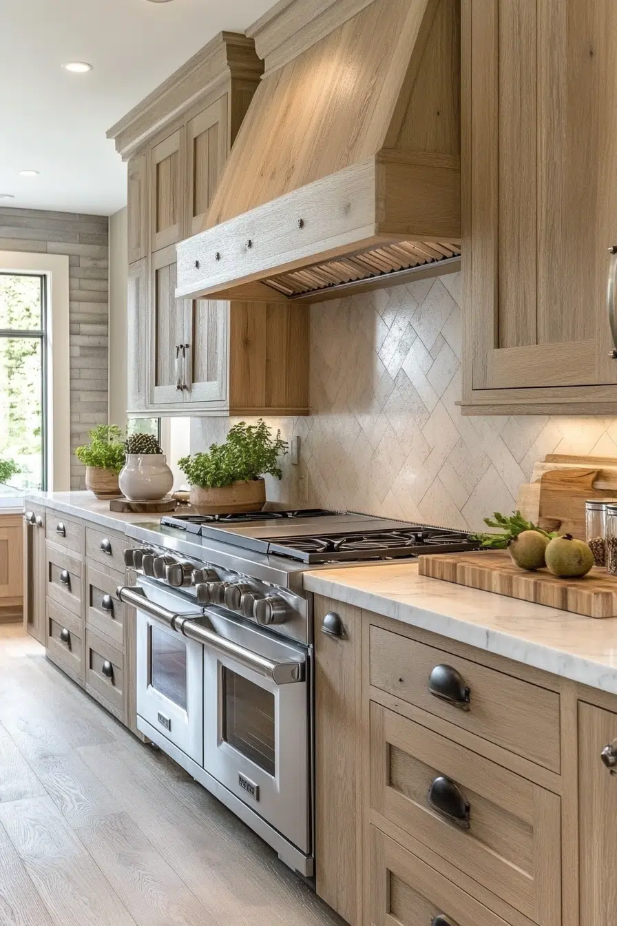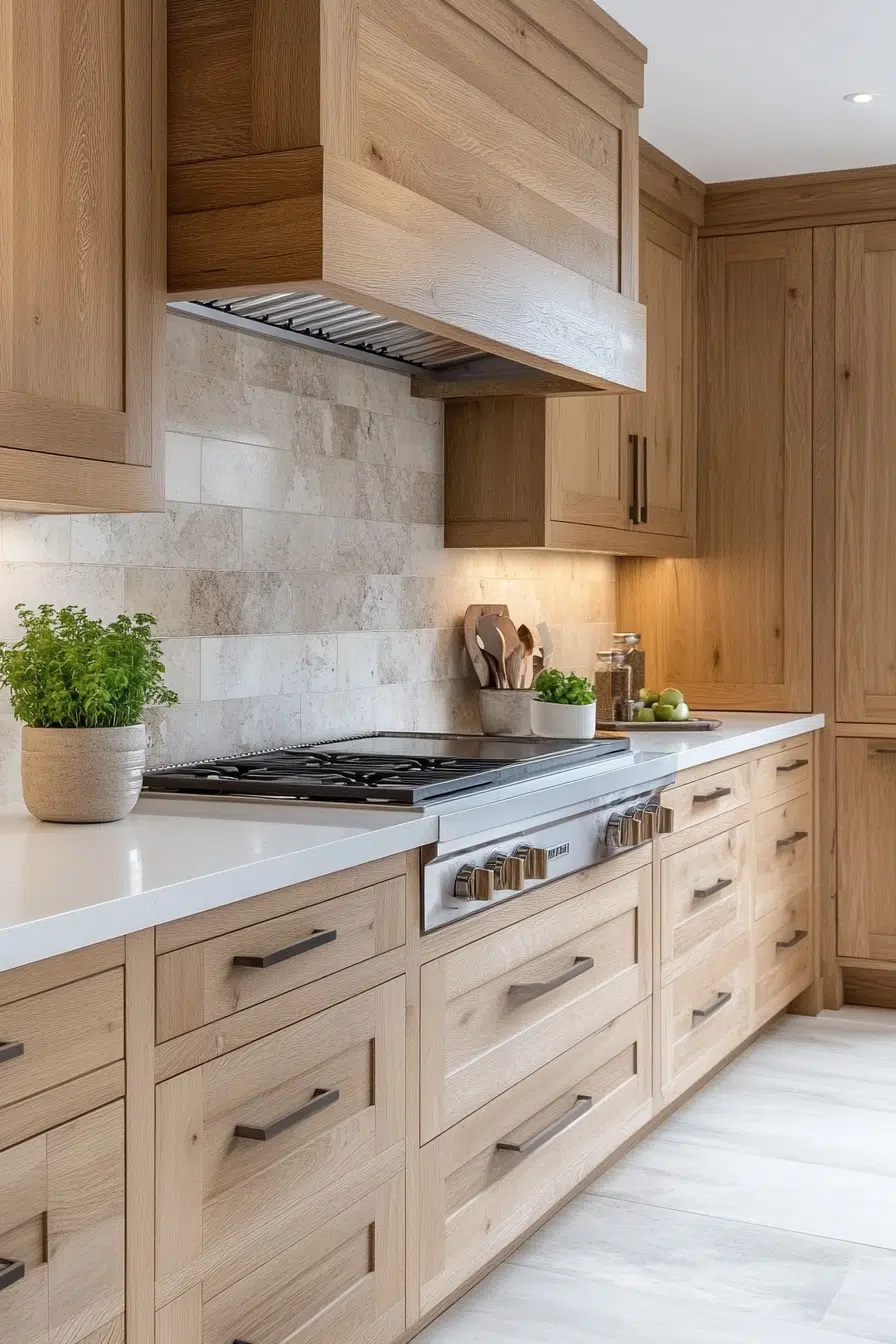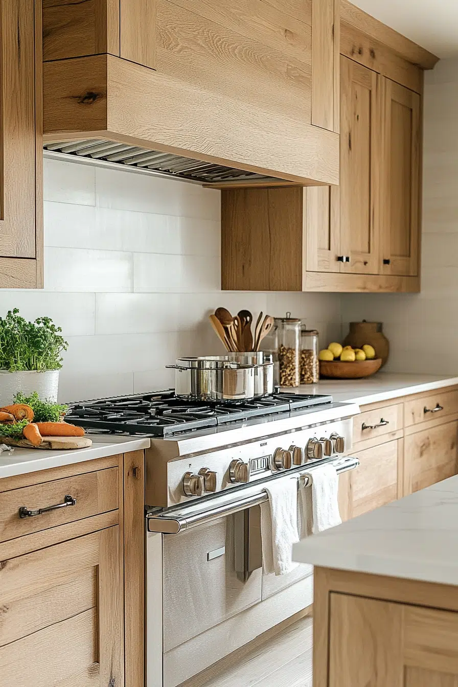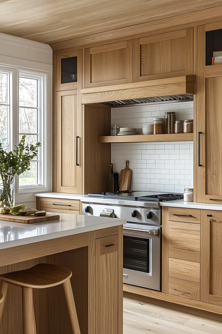 Keywords: white oak kitchen cabinets, modern cabinetry, kitchen design trends, organic modern design